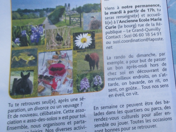 Si tu as fait une pré-inscription sur notre site tu pourrais t'inscrire directement sur ces fiches d'activité citées. A défaut contacte-nous (courriel rouen@asso-des-solos.fr ou sms ou appel 0660185491 Suzi)